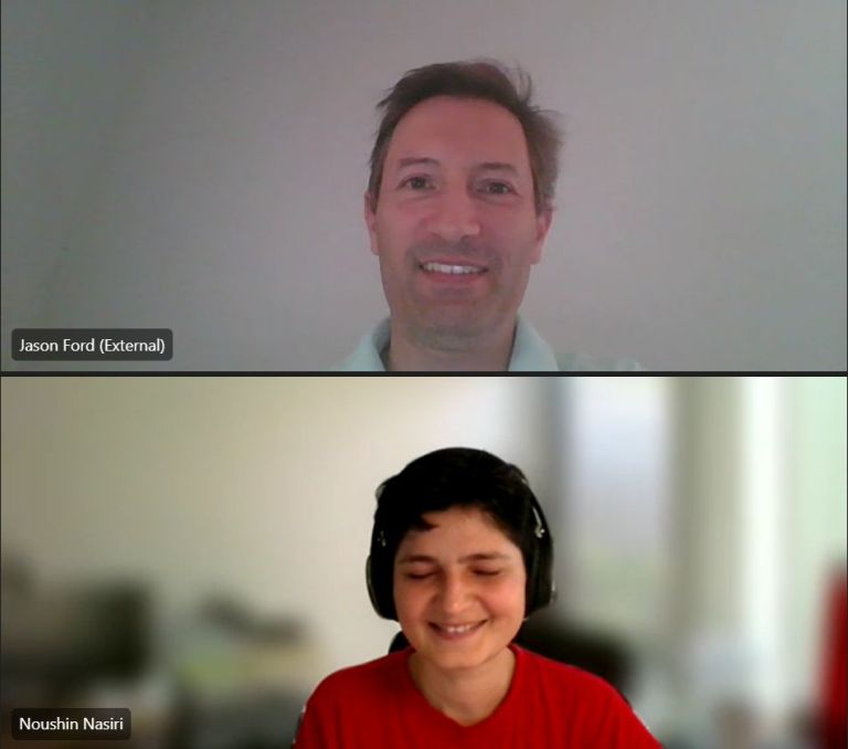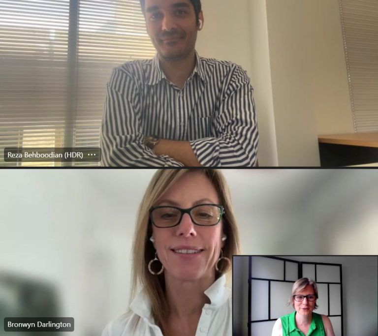 Photo credits: Dr Browyn Darlington’s selfie with Noushin and Reza from an earlier meeting; screenshots by Sabine Straver during the video kick-off meeting.